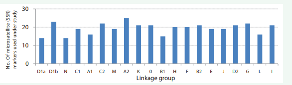 Figure 2: Histogram showing SSR markers throughout the linkage groups of soybean used under study