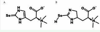 Figure 1 Chemical structure of selenoneine. A. selenoxo form. B. selenol form