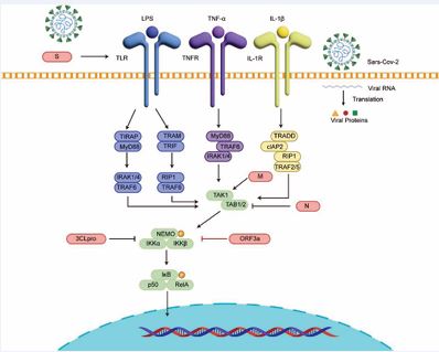 - Nie Y, Mou L, Long Q, Deng D, Hu R, Cheng J, et al. SARS-CoV-2 ORF3a positively regulates NF-κB activity by enhancing IKKβ-NEMO interaction. Virus Res. 2023; 328: 199086.