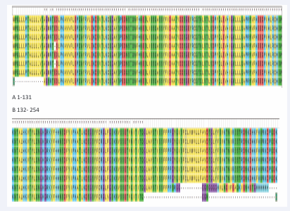 Figure 1: Sequences aligned by MEGA 7.10 arrays of sequences were aligned.(A)Amino acid position from 1-131;(B) amino acid position from 132-254.