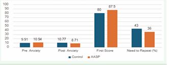 Figure 1 Graph of Results Difference in mean Pre to Post Anxiety scores for AASP group, statistically significant, p <0.001 Difference in mean first score between groups approached significance, p=0.053