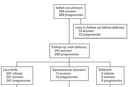 Figure 3: The PRISMS study. Outcomes of Pregnancy and Follow-up in Women with Multiple Sclerosis Who Were Recruited into the Study.