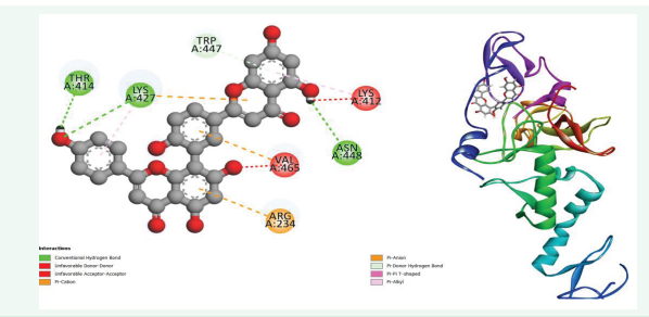 Further investigations were conducted to further reduce the number of potential compounds, with particular emphasis on predicting the toxicity of Amentoflavone are applied with pKCSM server [14]. Based on the results presented in Table 1,