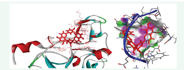 Figure 2: Displays the characterization of E3 ubiquitin-protein ligase parkin (in conjunction with Amentoflavone -10 kcal/mol within the potential Ligand Binding Site.