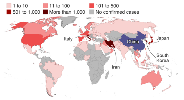 Figure 2 Cases of Coronavirus outside China. (Source: WHO, updated: 04 March 2020, 16:00 GMT).