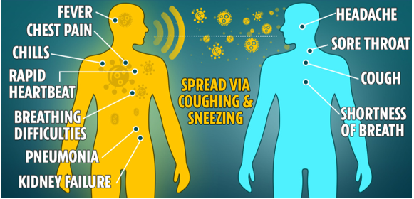 Figure 3 The symptoms of 2019-nCoV and how it spreads. (Source: The U.S. Sun, Updated: 25 February 2020, 14:29).