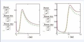 Figure 3 Energy release dynamics (kW cm-3) from reactions with 3He n during radial heating and from DD, DT, 3HeT and TT reactions during fuel mixture injection in the isobaric approximation.