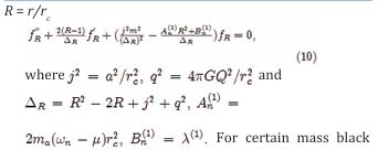 . So in order to get the numerical solutions of Eq.(10) and Eq.(12), we choose the physical parameters as follow: the mass of black hole is 30 times sun mass, the spin and charge are j = 0.720 and q = 0.697, meanwhile j2 + q2»1, we take the mass of axion m