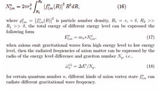 In atomic physics, V (r) in the G-P equation is taken to be an external harmonic trapping potential, mean-field self interactions can also be described by V (r). In general case, this potential term cannot allowed transition frequencies of the system, but for an electron-phonon system in a quantizing magnetic field, the energy spectrum is discrete and it can be expressed by the quantum number n of the Landu level [18]. From the point of view of quantum theory, electrons absorb the energy of electric field, which is equivalent to realizing the transition of electrons between Landau energy levels. Moreover, in the spinor BEC model, there is the Zeeman energy En shift caused by the constant magnetic field, where the quantum number n =1,0,-1 means that the atom is in different energy levels, and the particle numbers on the three energy levels are also different [19,20]. In this paper, since the radiation frequencies ωn of gravitational wave depend on the quantum number n of area change, and the frequencies ωn are similar to the constant Zeeman energy shift, so the wave function and particle number are related to the quantum number n, the distribution of axion number in each energy level is different. In this case, when the axions absorb the energy of the gravitational wave from the black hole, they can form different energy levels and the transition process can produce.The axions interaction is very weak in the early universe, their typical initial wavenumber is about where is the Hubble parameter at the QCD phase transition [21], so the axions are highly non- relativistic after phase transition. In addition, the speed of the axions in a galaxy can be expressed as