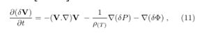 Establishing the velocity of the fluid by the Euler equation for a fluid with Total (T) internal energy ρ(T) becomes [11-24].