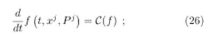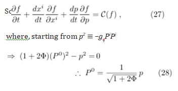 The relation that describes the temporal evolution of the Boltzmann distribution function on the “mass shell” f(t, xj, Pj) is called the Boltzmann Equation (BE)