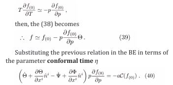 Decoupling Matter-Radiation: C(F(0) ) = 0: Immediately after the recombination phase, the uncoupled photons of matter start to propagate with an average free path of the order of + ∞, i.e., without interacting with anything else. In terms of the perturbed BE, this condition corresponds to fixing C(f(0) ) = 0.