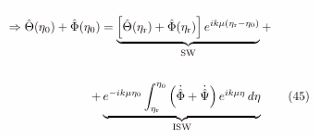 In these exact same terms it can be seen, from the previous relationship, that the temporal variation of Φ in the period that goes from tr to t0 also modifies the temperature spectrum of the CMB. This type of anisotropy corresponding to the spectrum of the CMB is called INTEGRATED SACHS-WOLFE EFFECT (ISW).