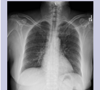 Figure 1: Chest X-Ray showing fine reticular opacities in the mid and lower lungs.