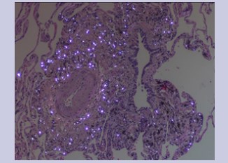 Figure 3: Histopathology showing birefringent silicate material within the interstitium.