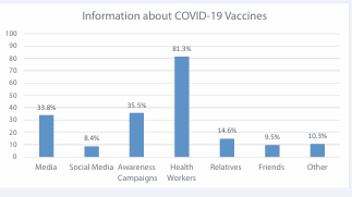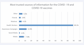 However, the results of this study also indicated that most of the respondents accounting for 67.7% affirmed that the COVID-19 vaccines were good for them. Furthermore, 25.8% of the respondents did not know whether the COVID-9 vaccines were good for them or not whereas, 6.5% of the respondents indicated that the COVID-19 vaccines were not good for them. Therefore, these findings demonstrates the need for provision of increased health promotion activities by health care professionals to the COVID-19 vaccines eligible population in order to improve the vaccination rate [13]. Moreover, health care workers were observed to be the most trusted and reliable source of information for COVID-19 vaccines by community members.