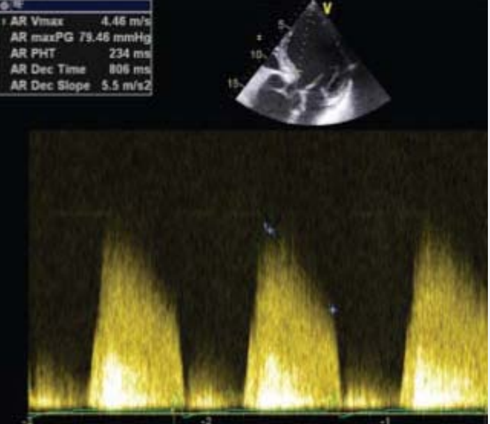 Figure 2b: AR PHT = Aortic Regurgitation Pressure Half-Time = 234 ms: obtained using continuous wave Doppler.