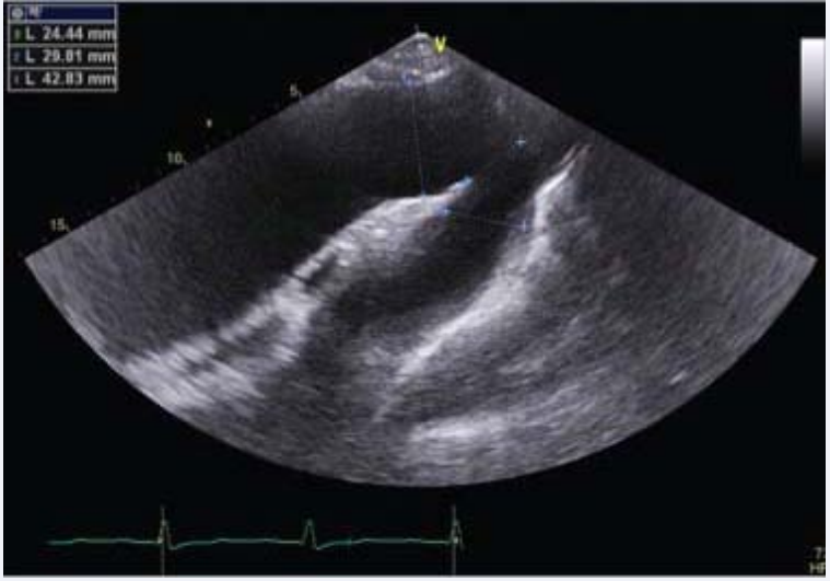 Figure 2d: Transthoracic echocardiography – suprasternal view, showing a dilation only of the ascending aorta.