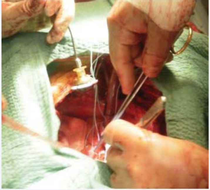Figure 5c: Implantation of mechanical prosthesis in aortic position St. Jude® # 25.