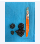 The study of the excision specimen showed 3 pieces of 2 cm for the smallest and 8 cm of long axis for the largest.
