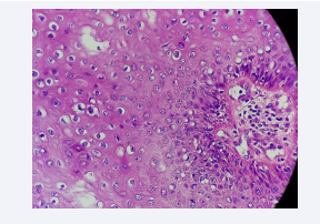 It is a perfectly limited squamous tumor characterized by epithelial hyperplasia, sometimes pseudoepitheliomatous, hyperacanthosis, hyperpapillomatosis and koilocytes which are pathognomonic markers of HPV infection, however their presence is not constant. The basement membrane remains intact as evidence of the benignity of the tumor despite its malignant behavior. Careful histological examination is crucial to exclude transformation to SCC [10].