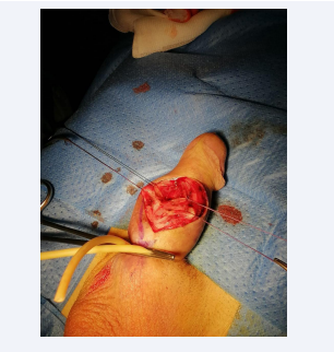 Where he underwent surgery involving a Longitudinal skin incision on ventral penile surface (Figure 2).