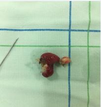 The most frequent revealing symptoms are mainly hematuria followed by symptoms of the lower urinary tract [6], this is indeed the case in our patient in whom hematuria was the revealing symptom.