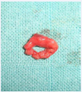 Figure 4 The Excised Ring prolapsed mucosa and suture.