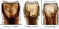 General description: The red worms (strongyles) are nematode parasites, which are commonly found in the large intestines of horses and other Equidae. They belong to the subfamily Strongylinae (large strongyles) and Cyathostominae (small strongyles). The large strongyles include S. vulgaris, S. edentatus and S. equinus, which, migrate extensively throughout the body, and Triodontophorus species, which do not have a migratory life cycle [5-37]. Members of the genus Triodontophorus (small strongyles) are frequently found in large numbers in the colon and contribute to the deleterious effects of mixed infection with other strongyles [11].