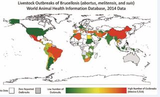 Figure 1 Map of Brucellosis outbreaks in livestock - WAHIS 2014 [26].