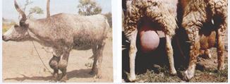 Figure 3 Hygromas on leg joints, swollen testes and udder.