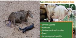 Clinical signs in animals: In animals, brucellosis can persist as a latent infection for several years, with clinical signs typically associated with the reproductive system. In females, the disease often presents as abortion during the third trimester, weak newborns, retained placenta, endometritis, and reduced milk production (Figure 4). In highly susceptible, unvaccinated pregnant animals, abortion after the fifth month of gestation is a hallmark sign. Although animals that abort due to brucellosis usually develop immunity, they often remain carriers and may continue to shed large numbers of Brucella organisms in fetal fluids during subsequent calvings [45].