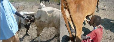 Figure 5 Blowing through the vulva to let down the milk and direct sucking of raw milk from the cattle camps; Source: [74].