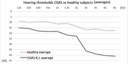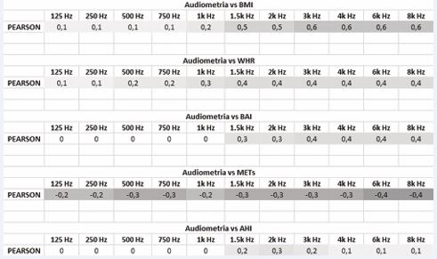 Similar results to the previous ones have also been obtained with the comparison between the auditory thresholds and the degree of OSAS (AHI). From a further comparison it was also possible to identify an inverse correlation between the degree of physical activity (assessed in METs) and the audiometric thresholds.