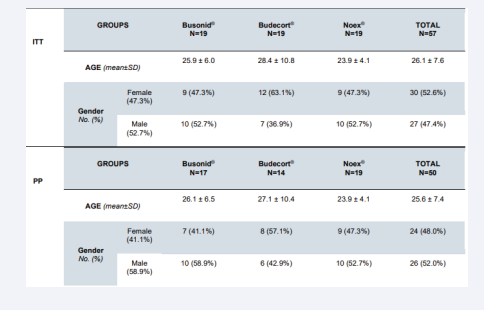 Table 3: Results of pre- and post-treatment test when comparing different brands of intranasal budesonide in per-protocol (PP) data analysis