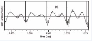 The source of data can be any high-quality recordings of voice, including speech and singing (without accompaniment). The voice signal is digitized and represented as PCM (pulse-code modulation) data. Many existing voice recordings also have simultaneously acquired EGG signals. Nevertheless, for voice recording without the simultaneous EGG signals, GCI can be extracted from the voice signal [3]. Since the invention of the pitch-synchronous overlap and add (PSOLA) for speech synthesis in the 1980s, in the speech technology community, a huge amount of high-quality simultaneous voice and EGG signals has been recorded. An example is the ARCTIC database, recorded and published by Carnegie Melon University [12]. Supported by the government, the data is publicly available. Spoken by three speakers, two male and one female, each reads a prepared text of 1132 sentences. Among the three speakers, the female speaker slt is often the prime choice. As an example, the sentence a0003 is For the twentieth time that evening the two men shook hands. The waveform and the corresponding segmentation points of part of the vowel [i] from the word “evening” is shown in Figure 3.