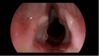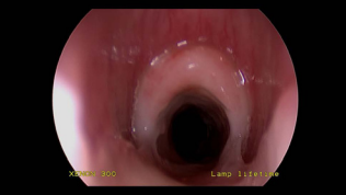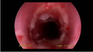 Figure 3: Subglottic narrowing with white circumferential membrane.