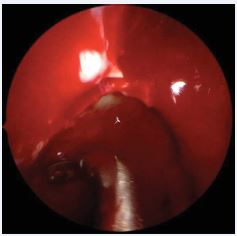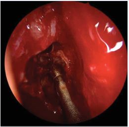 Figure 1 Reboot surgery approach. Use of 360o rotating antrum forceps in the maxillary sinus, right side.