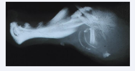 Mandibular joins anchylosed to the cranial base prohibit mandibular jaw movements. This condition might be a sequala after an infection, is shown in Figure 18A.
