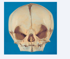 Figure 11: Frontal view of a human cranium from a child aged 0-6 month. In the mandible the symphysis menti is open and the alveolar process not developed.